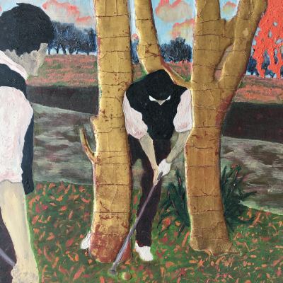 I see a correlation between supporting sports and religious belief. Following a ‘team’ is a projection of hope, it requires faith that is often separate from facts and reality; it requires devotion. Supporters of a particular team can form a congregation of like-minded believers and may show fanaticism. Icons of saints and images of great sportsmen and women are meant to be inspirational and profound. They are about capturing a dramatic moment for posterity. They affirm the belief of the faithful. The power of the passion felt by a football fan, horseracing pundit or golf fanatic is both frightening and wonderful. Creating art also has an element of spirituality and drive.