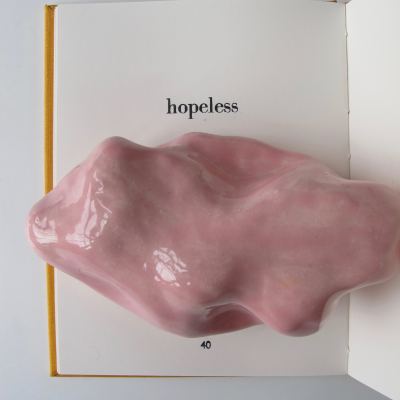 Each copy comes with a glazed ceramic rock, colour of your choosing, and a statement. You can read this statement on my S for Soraya page, scroll down to Articles and open Harbouring Doubt link.